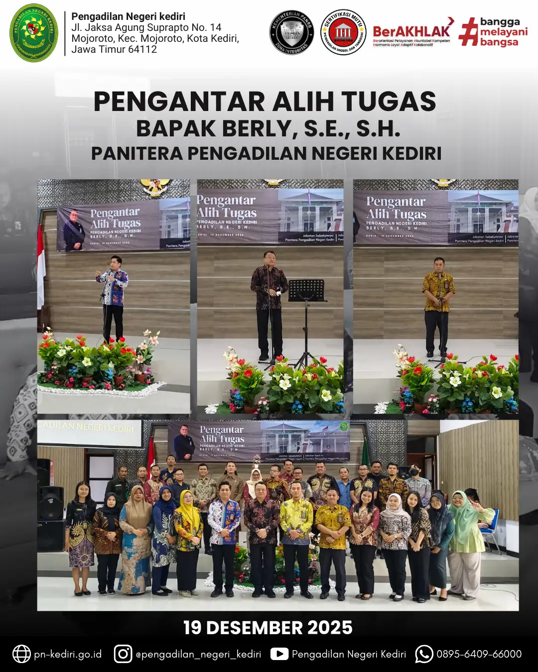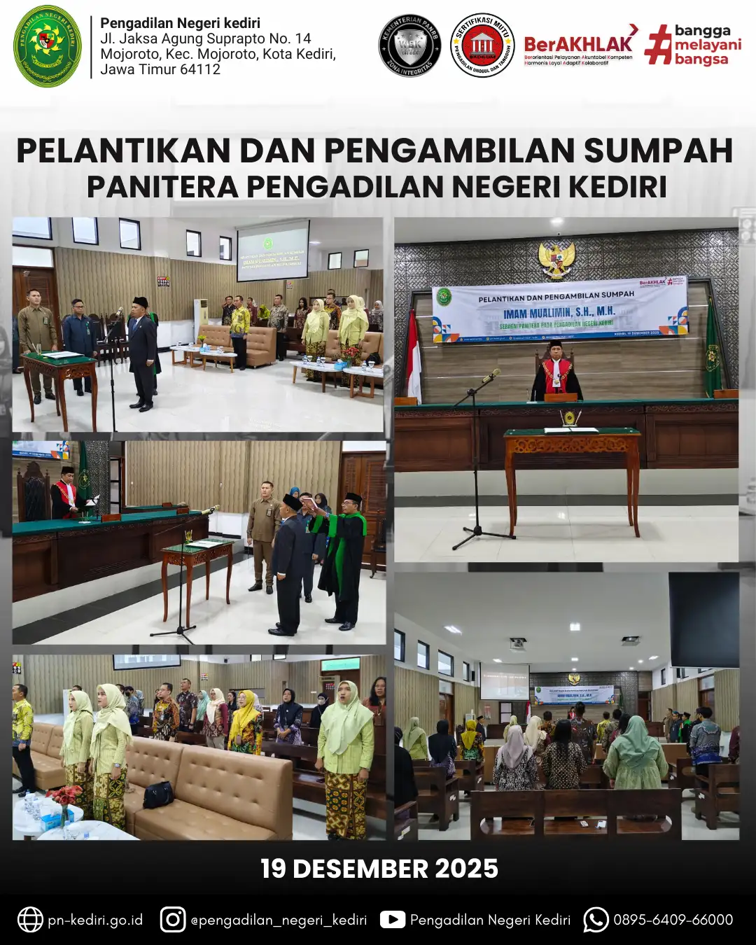 Pelantikan dan Pengambilan Sumpah IMAM MUALIMIN, S.H., M.H Sebagai Panitera Pengadilan Negeri Kediri