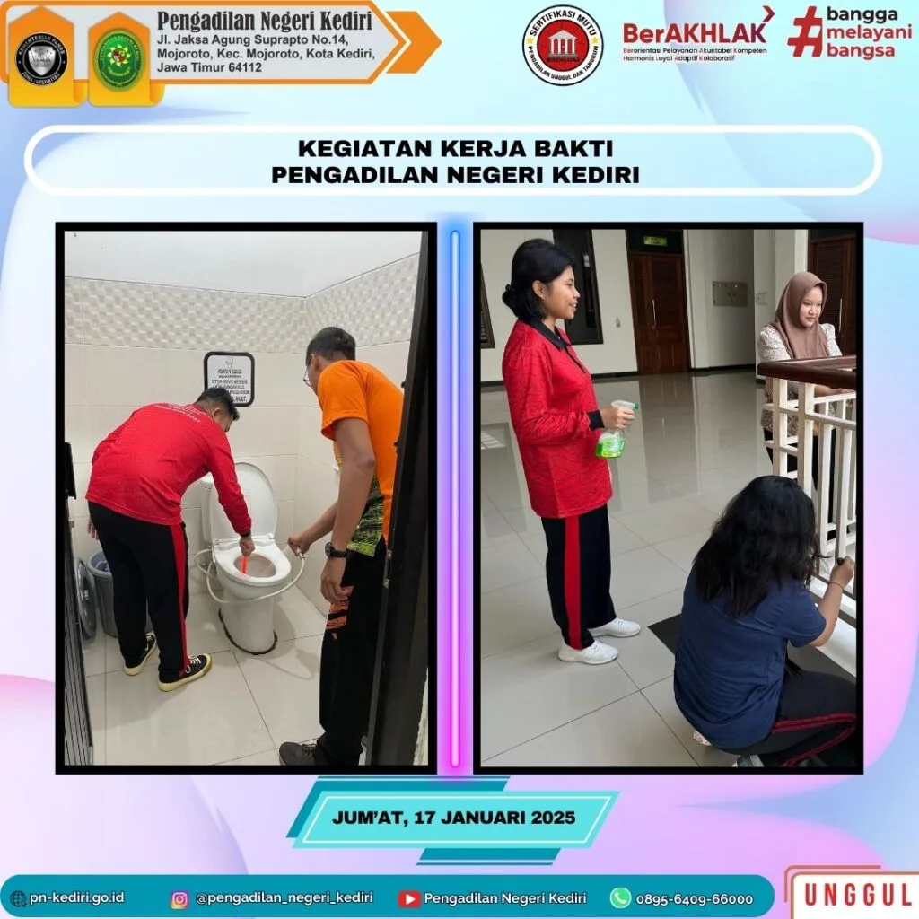 Pada hari Jumat tanggal 17 Januari 2025 Pengadilan Negeri Kediri telah Mengadakan Kegiatan Kerja Bakti.