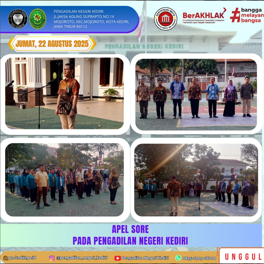 Kegiatan Apel Sore pada hari Jumat, tanggal 22 Agustus 2025 :