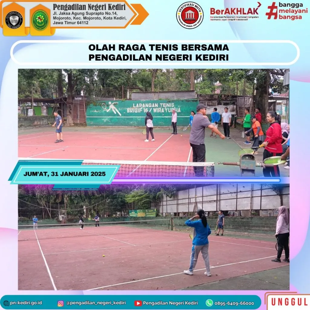 Kegiatan Olah Raga Tenis bersama Pengadilan Negeri Kediri pada hari Jum’at, tanggal 31 Januari 2025 di Lapangan Tenis Brigif 16/ Wirayudha Kediri.