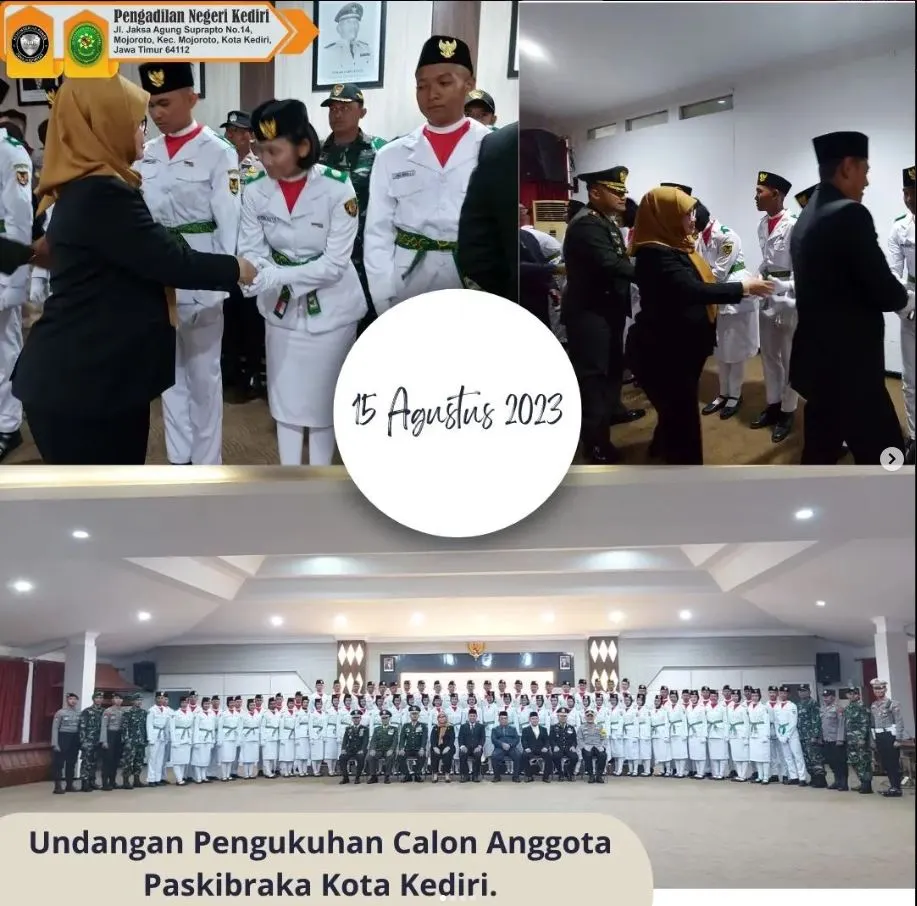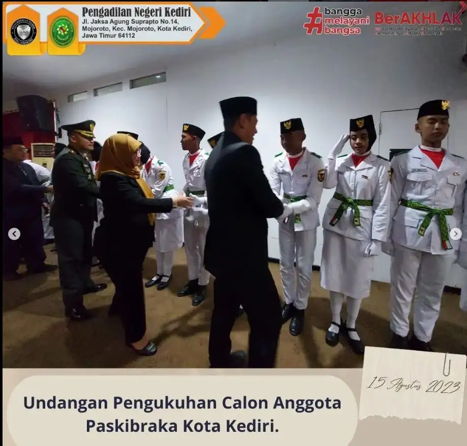 Ketua Pengadilan Negeri Kediri, Ibu Maulia Martwenty Ine, S.H., M.H., menghadiri Pengukuhan Calon Anggota Paskibraka Kota Kediri.
