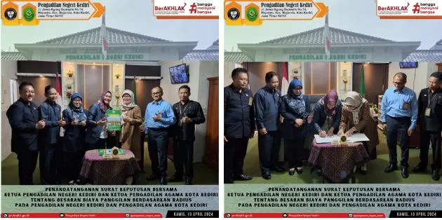 Penandatanganan Surat Keputusan Bersama Ketua Pengadilan Negeri Kediri dan Ketua Pengadilan Agama Kota Kediri Tentang Besaran Biaya Panggilan Berdasarkan Radius Pada Pengadilan Negeri Kediri dan Pengadilan Agama Kota Kediri.