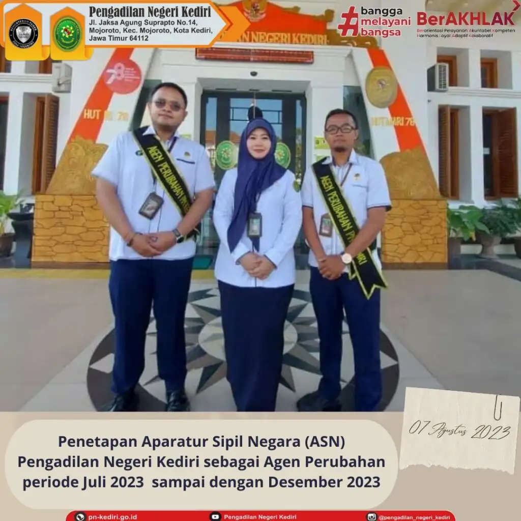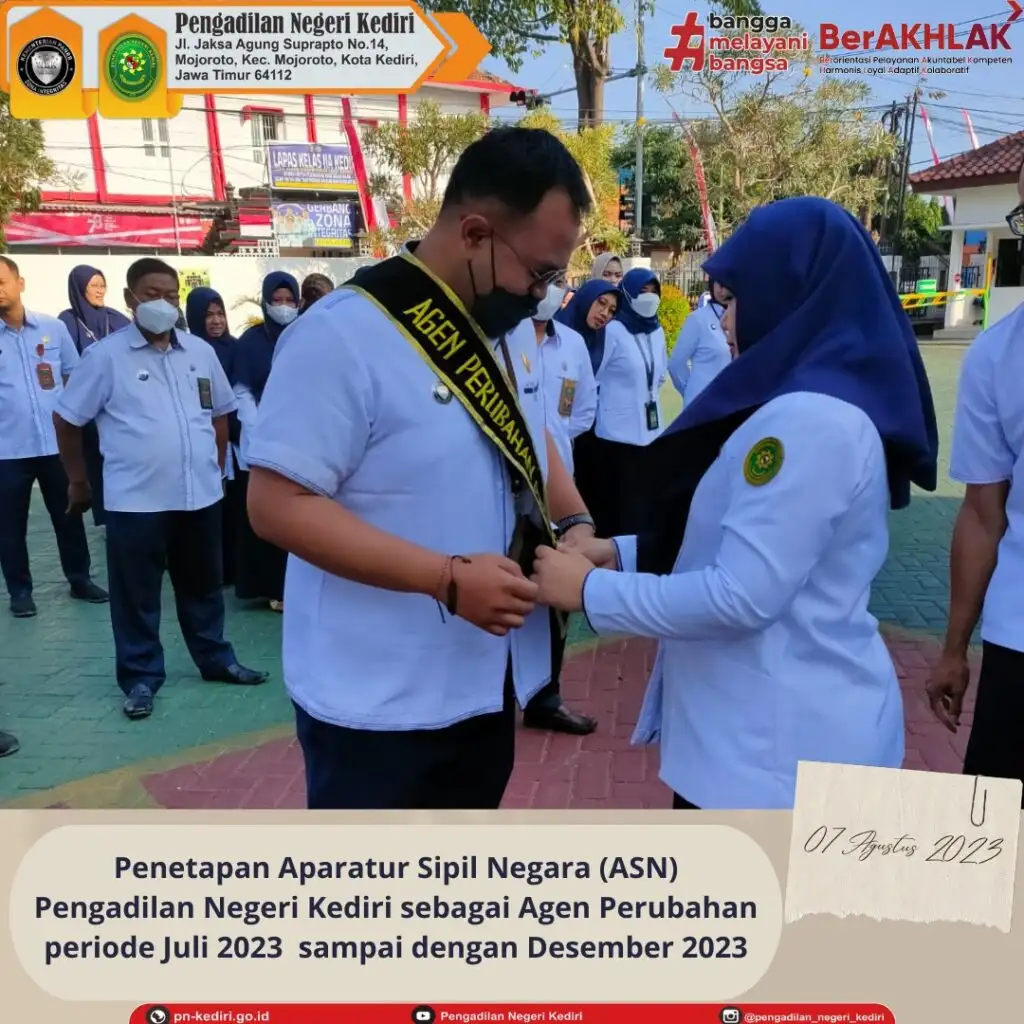 Penetapan Aparatur Sipil Negara (ASN) Pengadilan Negeri Kediri sebagai Agen Perubahan periode Juli 2023 sampai dengan Desember 2023,
