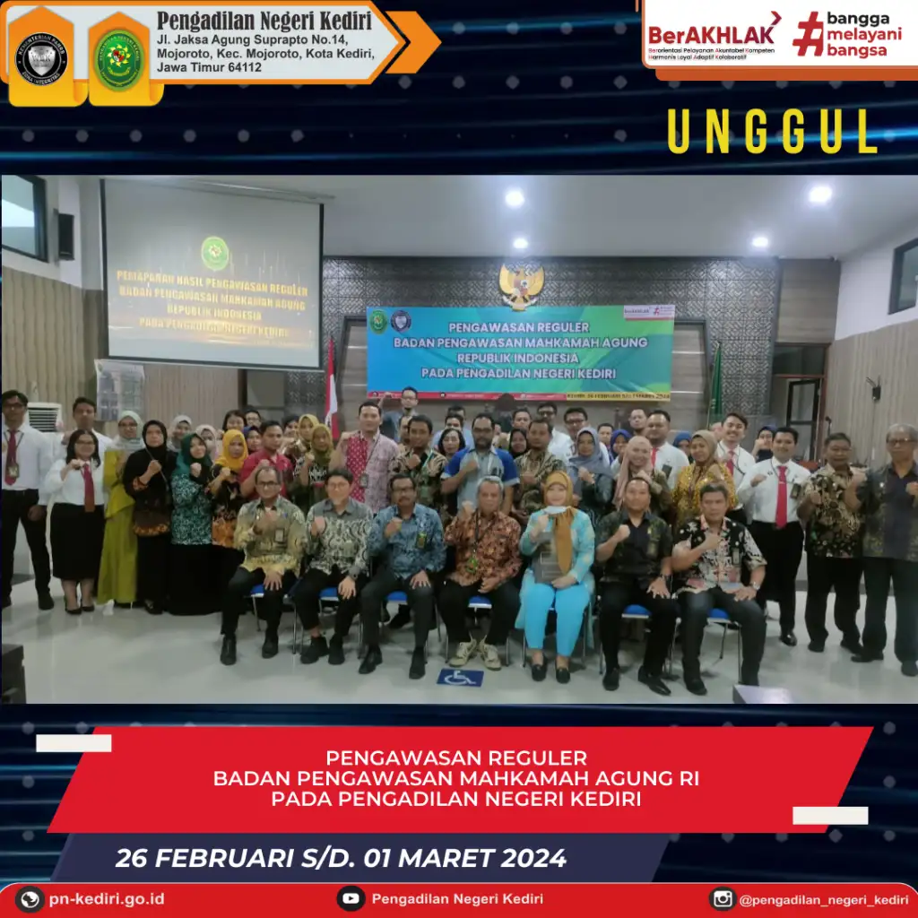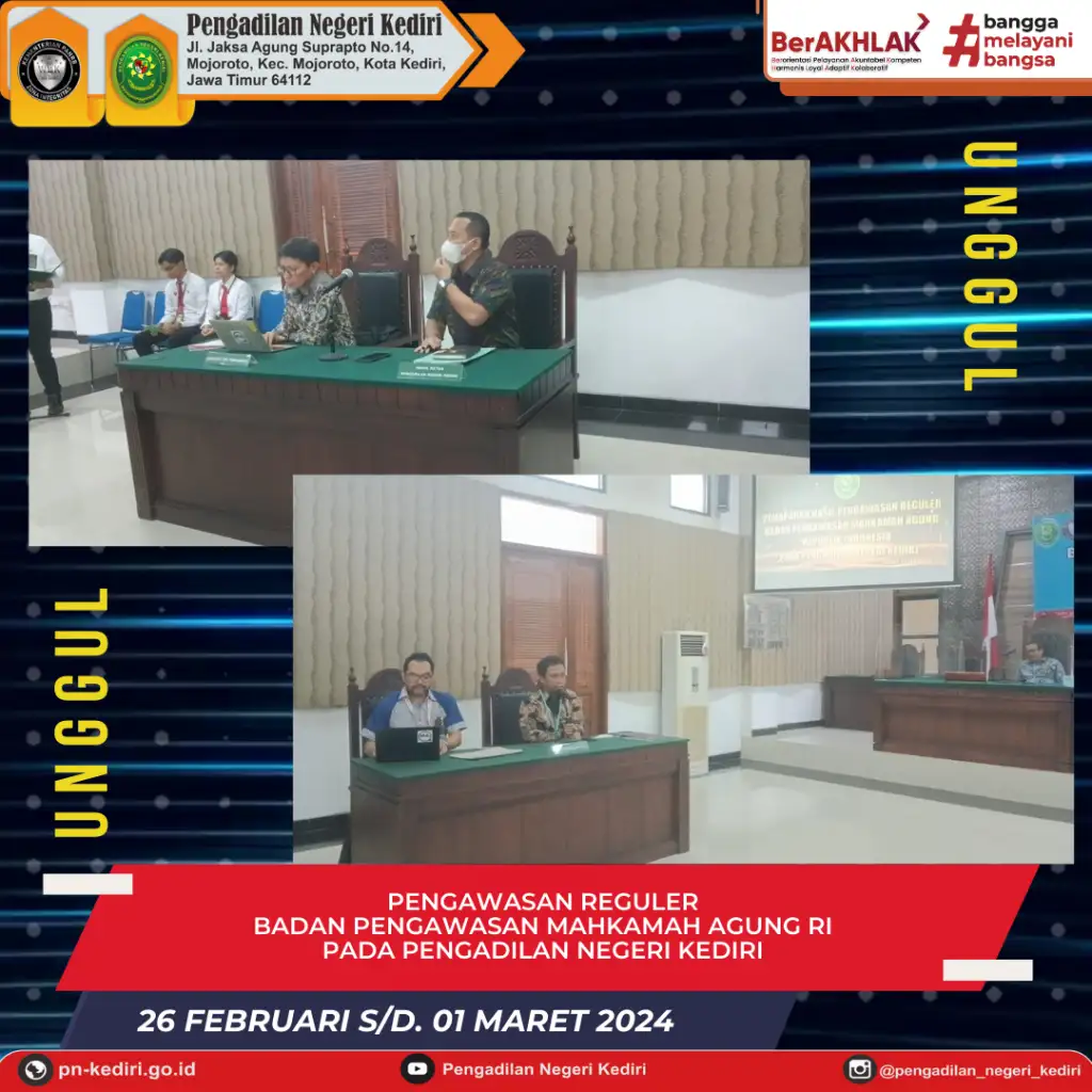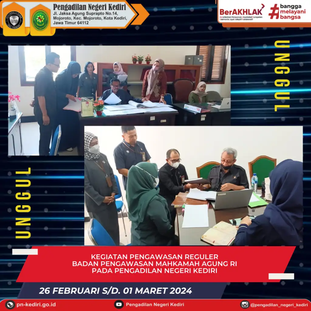 Tim Badan Pengawasan Mahkamah Agung Republik Indonesia melaksanakan Pengawasan Reguler pada Pengadilan Negeri Kediri.