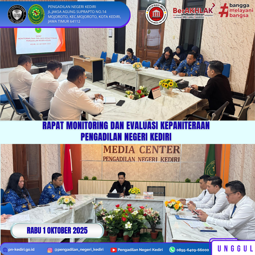 Rapat dipimpin oleh Ketua Pengadilan Negeri Kediri, Bapak Khairul, S.H., M.H., pada Hari Rabu, tanggal 01 Oktober 2025, bertempat di Ruang Media Center Pengadilan Negeri Kediri.