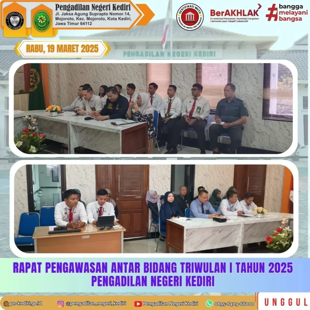 Kegiatan Rapat Pengawasan antar Bidang Triwulan I Tahun 2025 Pengadilan Negeri Kediri pada Hari Rabu, tanggal 19 Maret 2025 di Ruang Command Center Pengadilan Negeri Kediri.