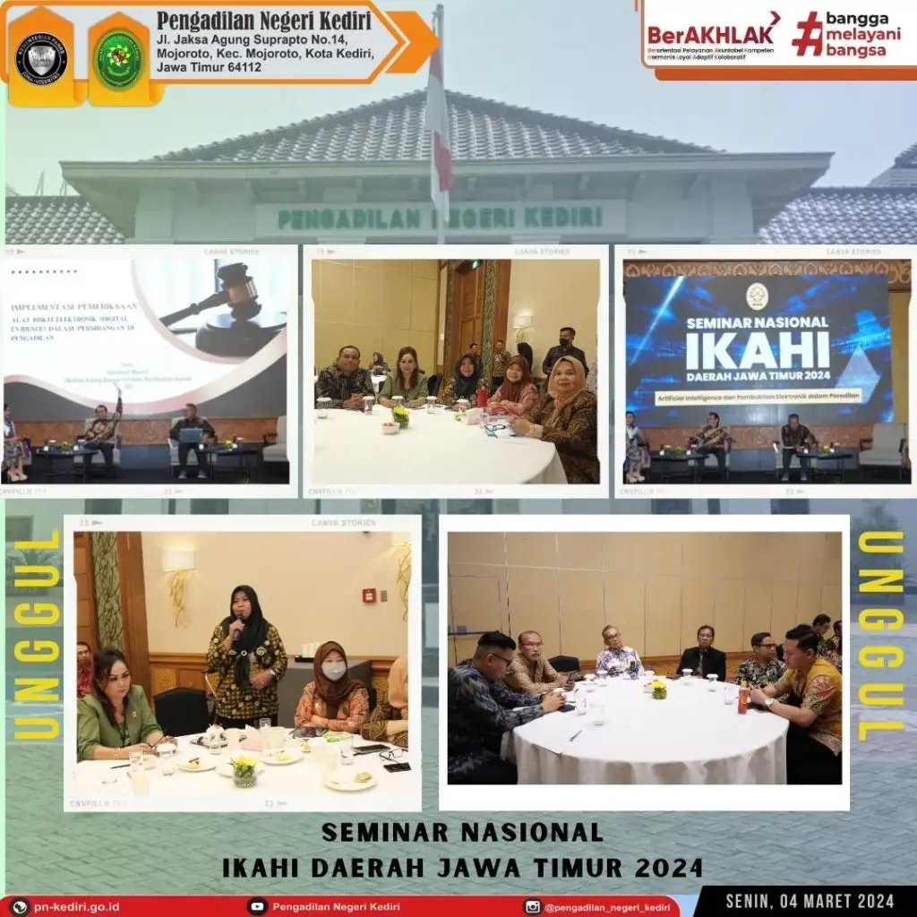 Ketua Pengadilan Negeri Kediri, Ibu Maulia Martwenty Ine, S.H., M.H. dan Hakim Pengadilan Negeri Kediri, Bapak Agung Kusumo Nugroho, S.H., M.H., Bapak Alfan Firdauzi Kurniawan, S.H., M.H. dan Bapak Damar Kusuma Wardana, S.H., M.H. mengikuti Seminar Nasional Ikatan Hakim Indonesia (IKAHI) Daerah Jawa Timur Tahun 2024.