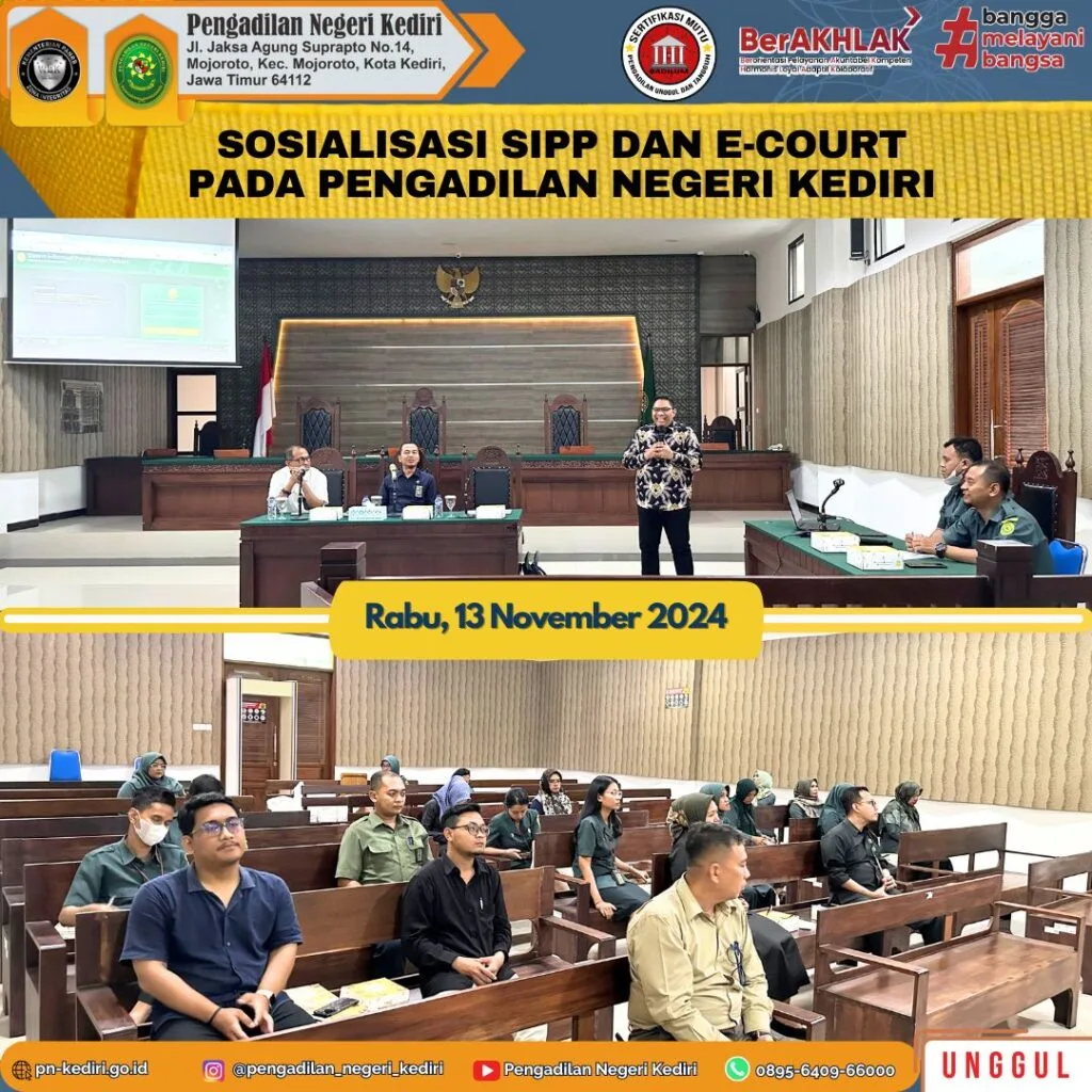 Pada Hari ini Rabu, tanggal 13 November 2024, bertempat di Ruang Sidang Cakra Pengadilan Negeri telah dilaksanakan Sosialisasi SIPP dan E-Court oleh Bapak Adityo Nugroho, S.T. dari Satgas SIPP Mahkamah Agung.