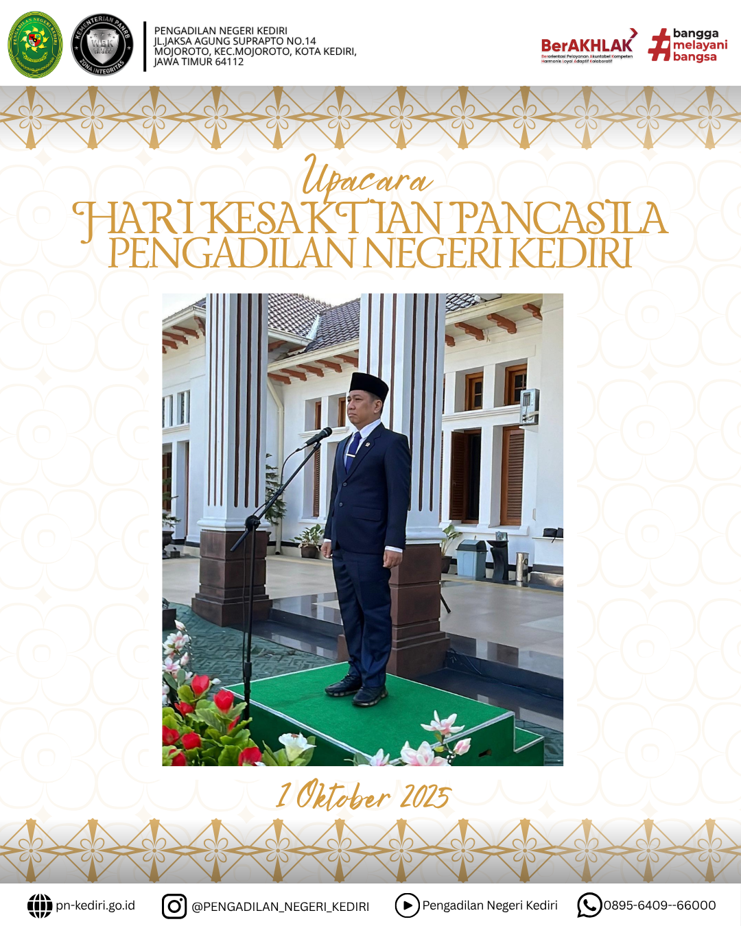 Upacara Peringatan Hari Kesaktian Pancasila. Pengadilan Negeri Kediri, pada Hari Rabu, tanggal 01 Oktober 2025, bertempat di Halaman Pengadilan Negeri Kediri.