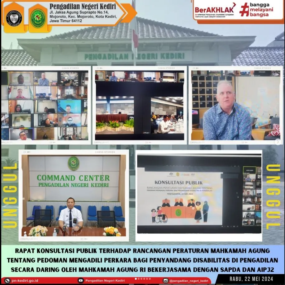 Dilaksanakan secara daring melalui Zoom Meeting pada Hari Rabu, tanggal 22 Mei 2024, bertempat di Ruang Command Center Pengadilan Negeri Kediri.